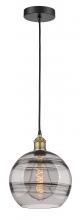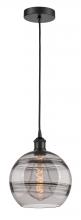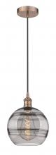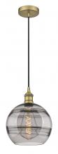 The Rochester Series is meticulously handcrafted, showcasing exquisite glass band detailing. These bands are the result of a complex and delicate glassblowing technique, making each pendant truly one-of-a-kind. While the exterior of the glass shade has a s