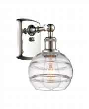 The Rochester Series is meticulously handcrafted, showcasing exquisite glass band detailing. These bands are the result of a complex and delicate glassblowing technique, making each pendant truly one-of-a-kind. While the exterior of the glass shade has a s
