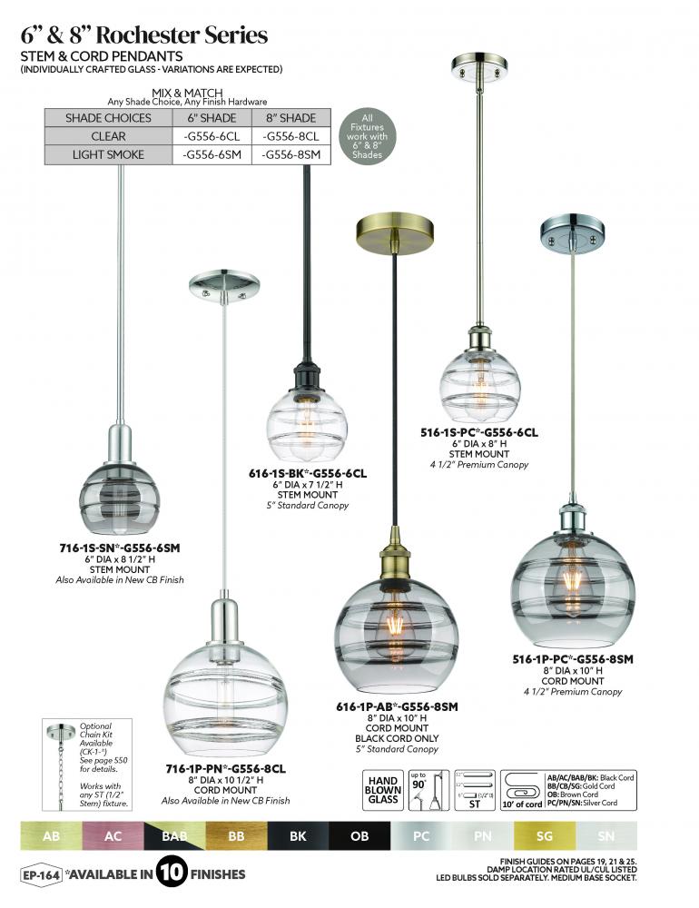 The Rochester Series is meticulously handcrafted, showcasing exquisite glass band detailing. These bands are the result of a complex and delicate glassblowing technique, making each pendant truly one-of-a-kind. While the exterior of the glass shade has a s