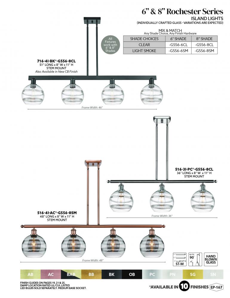 The Rochester Series is meticulously handcrafted, showcasing exquisite glass band detailing. These bands are the result of a complex and delicate glassblowing technique, making each pendant truly one-of-a-kind. While the exterior of the glass shade has a s
