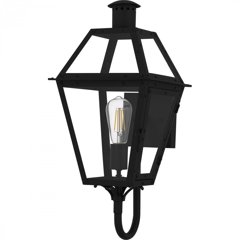 The Rue De Royal outdoor lantern collection offers the charm of a historic gas lantern with the ease of electric lighting. This lantern features a hand-riveted metal frame reminiscent of an antique gas lantern, complete with a fully functioning door for