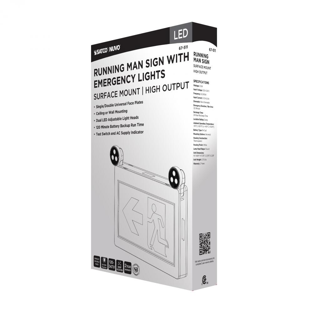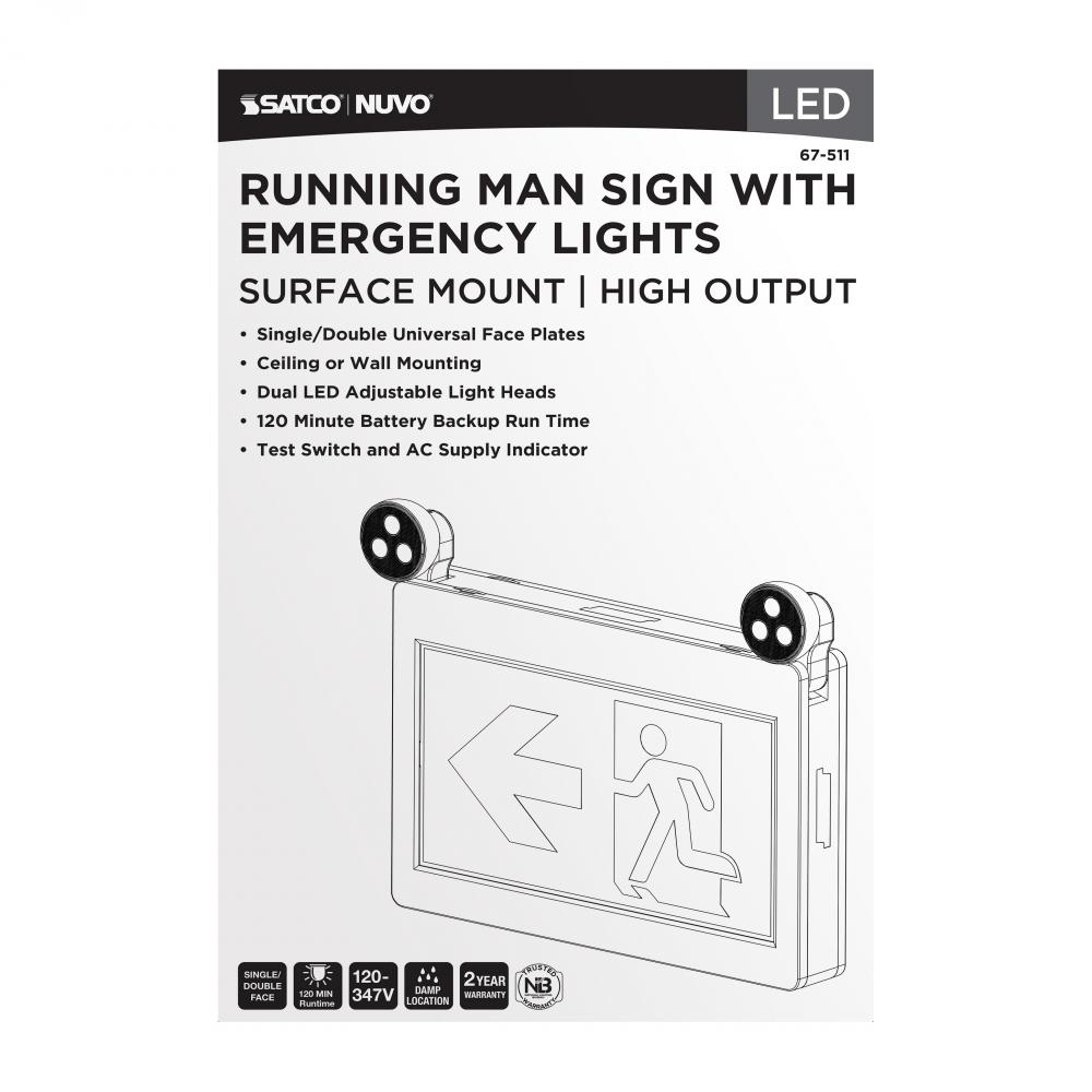 Keep your building safe and secure with the SATCO NUVO LED Running Man Signs and Emergency Light Combos. Choose single or dual-face installation and customize the interchangeable pictograms to fit your needs. Combo models offer two adjustable light heads t