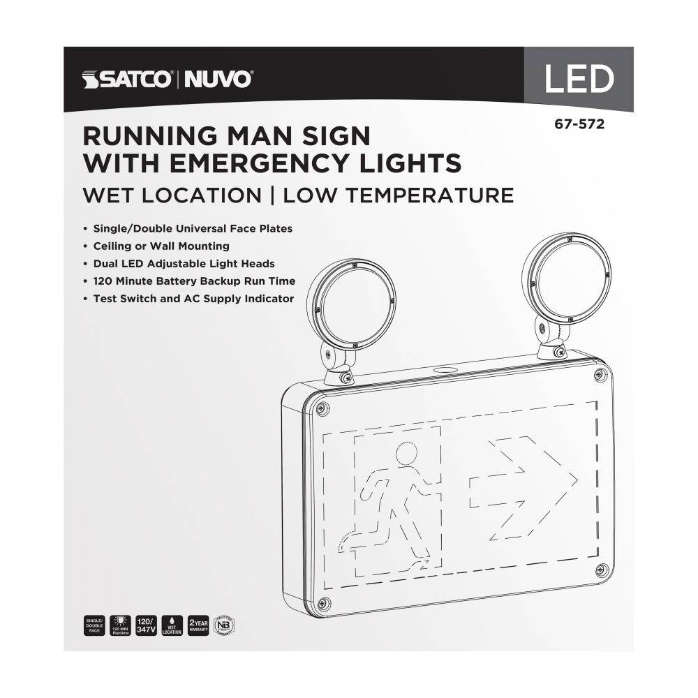 Keep your building safe and secure with the SATCO NUVO 67-572 LED Running Man Signs and Emergency Light Combos. Choose single or dual-face installation and customize with the interchangeable pictograms to fit your needs. Combo models offer two adjustable l