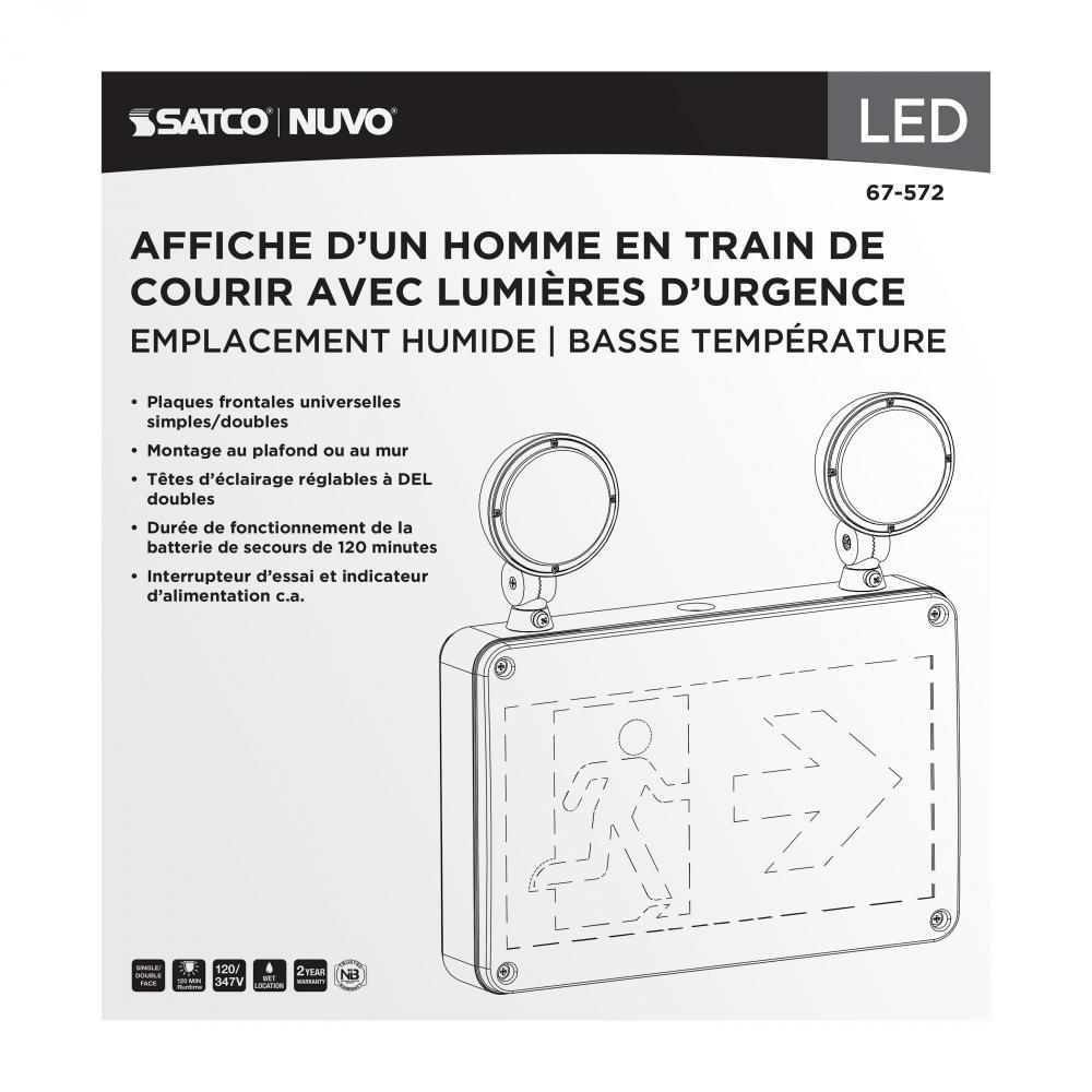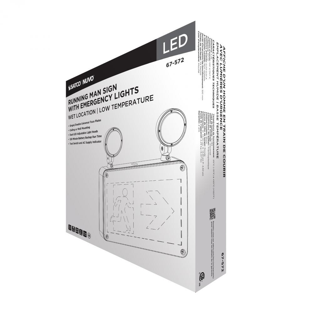 Keep your building safe and secure with the SATCO NUVO LED Running Man Signs and Emergency Light Combos. Choose single or dual-face installation and customize with the interchangeable pictograms to fit your needs. Combo models offer two adjustable light he