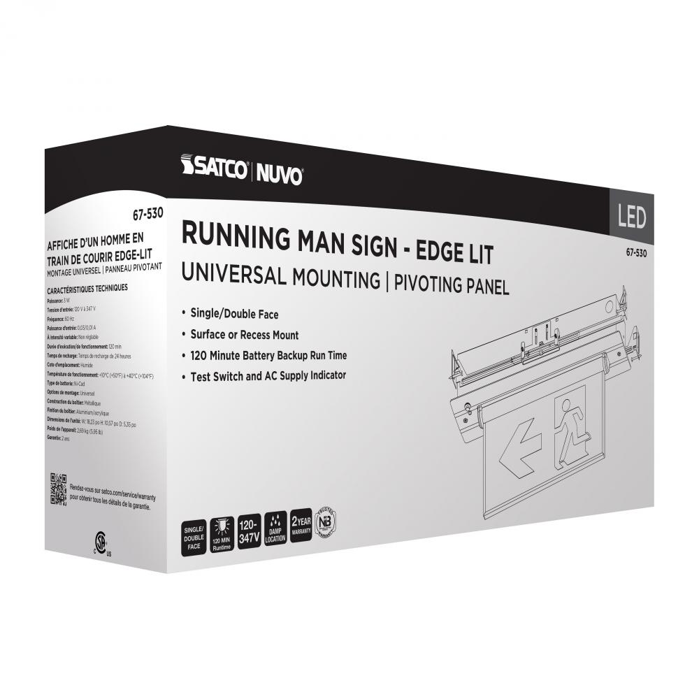 Keep your building safe and secure with the SATCO NUVO LED Running Man Signs. Choose single or dual-face installation and customize the pictogram to fit your needs. The unique pivoting head on this model allows for optimal positioning based on your locatio