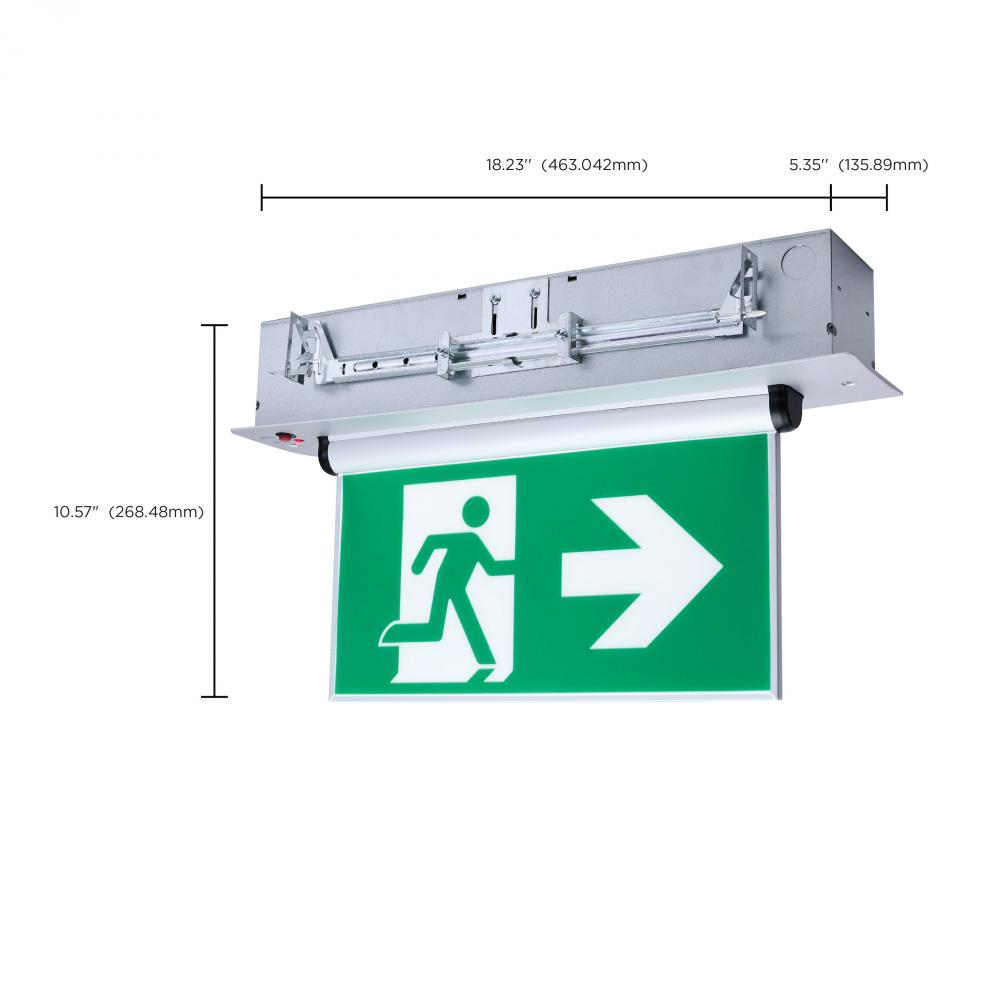 Running Man Green Edge Lit Exit Sign; 120-347V; 2HR backup; Single/Dual Face; Universal Surface or Recessed Mounting; Pivoting Panel