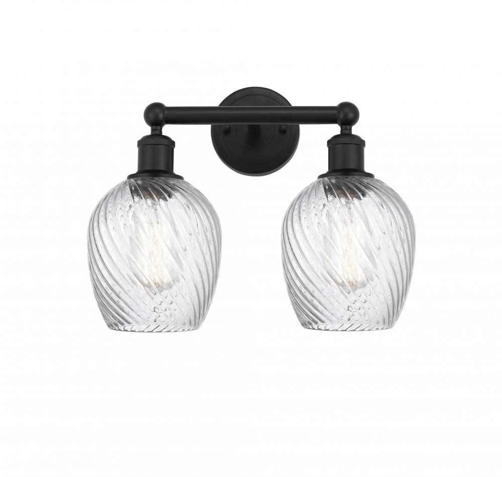Salina - 2 Light - 15 inch - Matte Black - Clear Spiral Fluted Shade - Bath Vanity Light