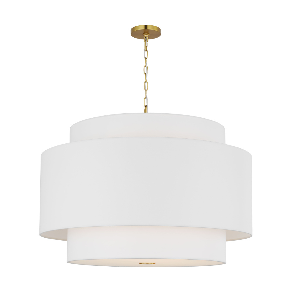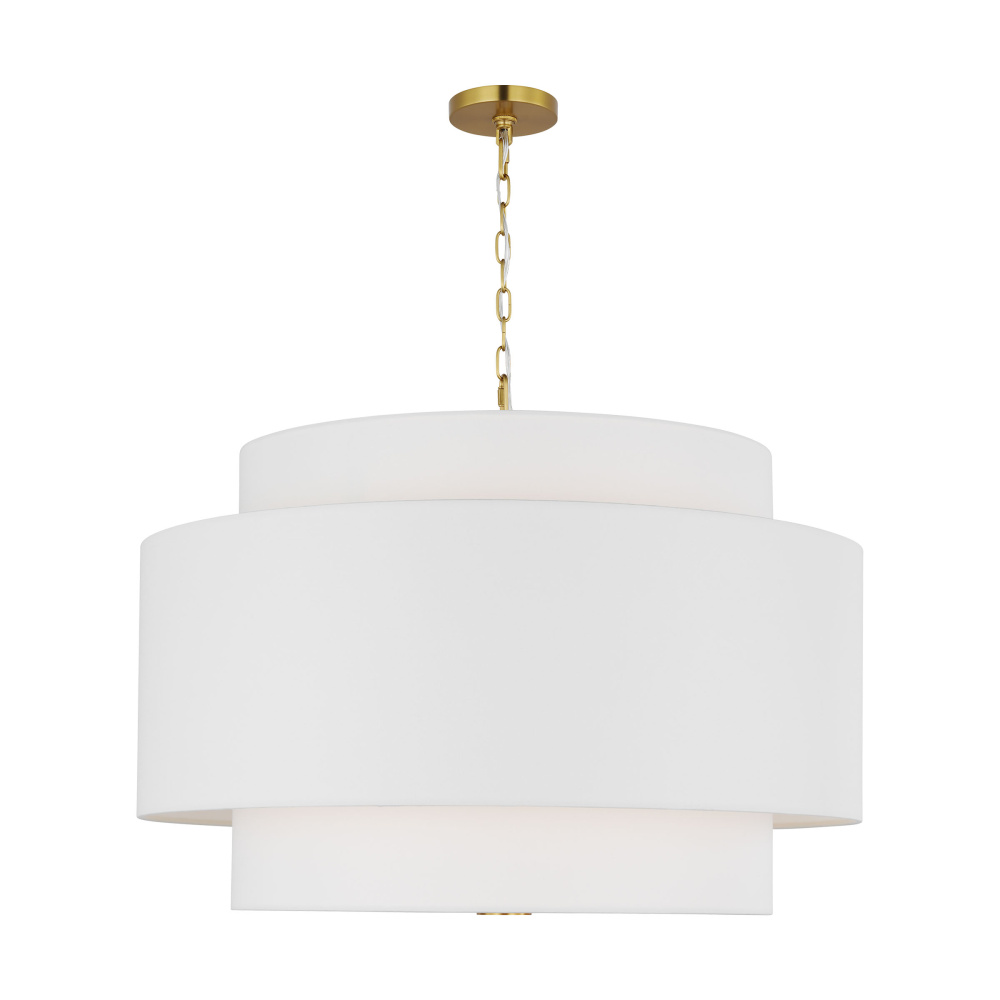Inspired by kate spade new york whimsical geometry and playful lines, Sawyer has a striking silhouette with graphically taped shades. The Sawyer is a wide playful hanging shade with arched lines and wide, graphically taped shades. This simple and graphic chandelier would be great over a dining table or nook, as well as in a living room scenario.
