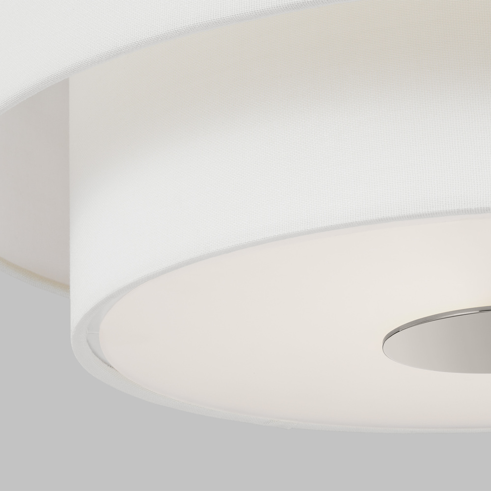 Inspired by kate spade whimsical geometry and playful lines, Sawyer has a striking silhouette with graphically taped shades. The Sawyer flush mount fixture by kate spade New York is available in burnished brass and polished nickel finishes.