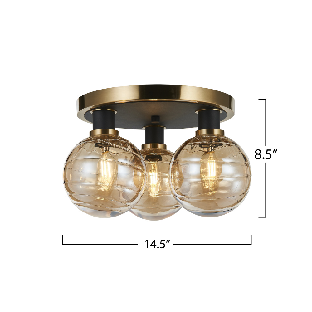 The Gem Collection with champagne glassware has a rich, translucent amber hue with a high level of clarity, allowing light to pass through while casting a warm, golden tone. This model is a 3 lite semi flushmount.