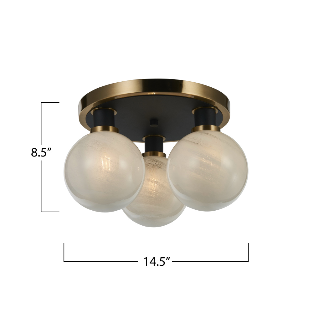 The Gem collection with “Blizzard” glassware exudes a sense of sophistication. Featuring a glossy textured white, the glass glows giving it a timeless and contemporary feel. The combination of the black framing with brushed brass is simply exquisite. A beautiful 3 lite semi flushmount shown.