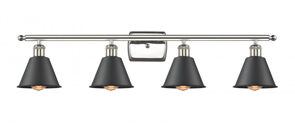 Smithfield - 4 Light - 37 inch - Polished Nickel - Matte Black Shade - Bath Vanity Light