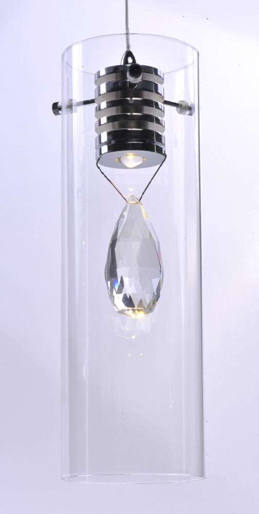 Elegant beveled crystal, almond pentalogue suspended inside clear glass cylinders, are brought to life by high powered 3W COB LEDs. These LEDs are cleverly concealed inside heat sink castings that are finished in Polished Chrome.