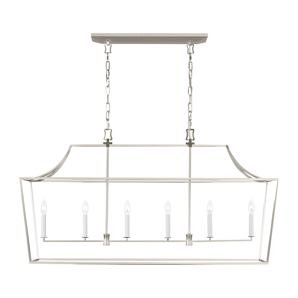 Southold by Chapman & Myers pairs curves and lines to form a classic geometric silhouette. This new, contemporary lantern has a thin frame that gives it an airy feel, paired with a tight hub for the candelabra. For a more modern look, try Southold in Polished Nickel. This lantern series will make any space well-lit and elegant.
