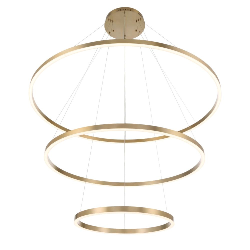 Oversized machined aluminum rings bring these simple chandeliers to life. The grand stature demands attention and illuminates large spaces with opal diffused LED lighting.