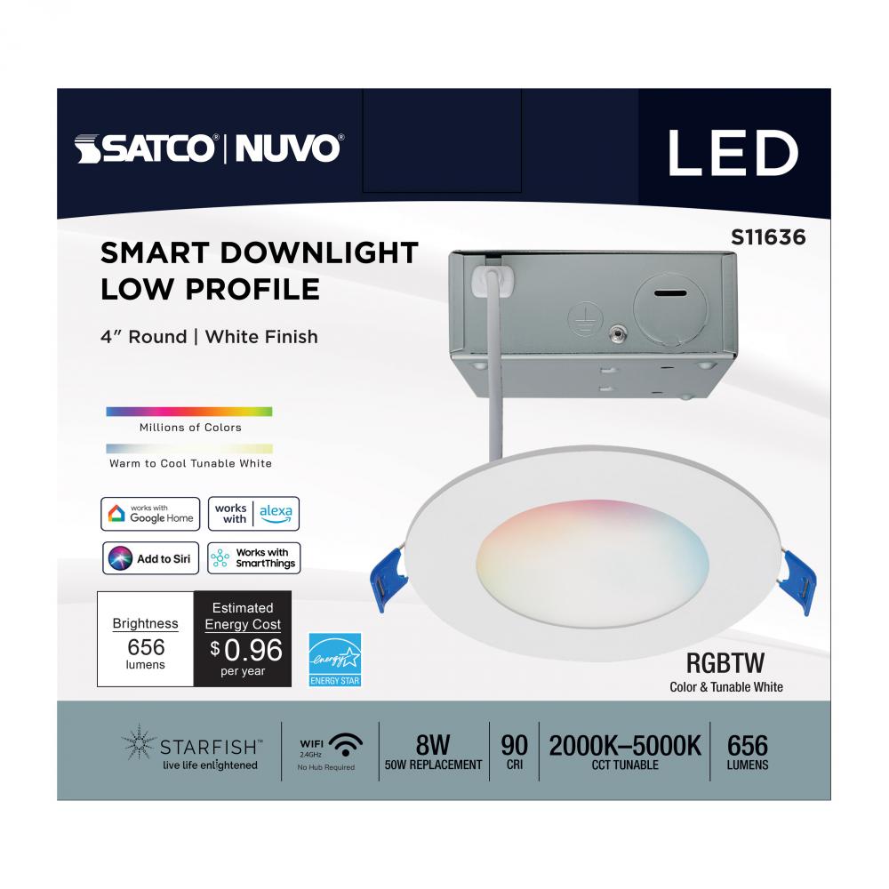 SATCO NUVO'S S11636 4-inch LED Slimfit Downlights with STARFISH technology are the ultimate choice for smart lighting and ambiance control. Download the STARFISH app to customize any tunable white color temperatures from 2000K warm white light to 5000K