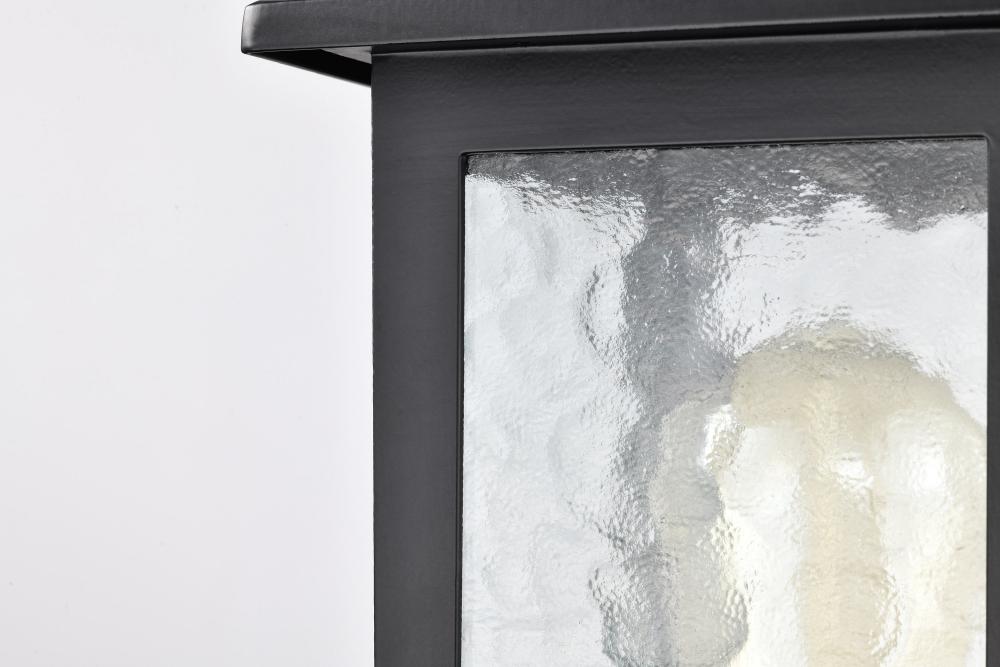 A lantern-style approach to its design makes the Stillwell Outdoor Series a bona fide hit. The translucent water glass obscures the bulb while still providing plenty of light to go around. Its elongated, die-cast aluminum structure is finished in matte bla