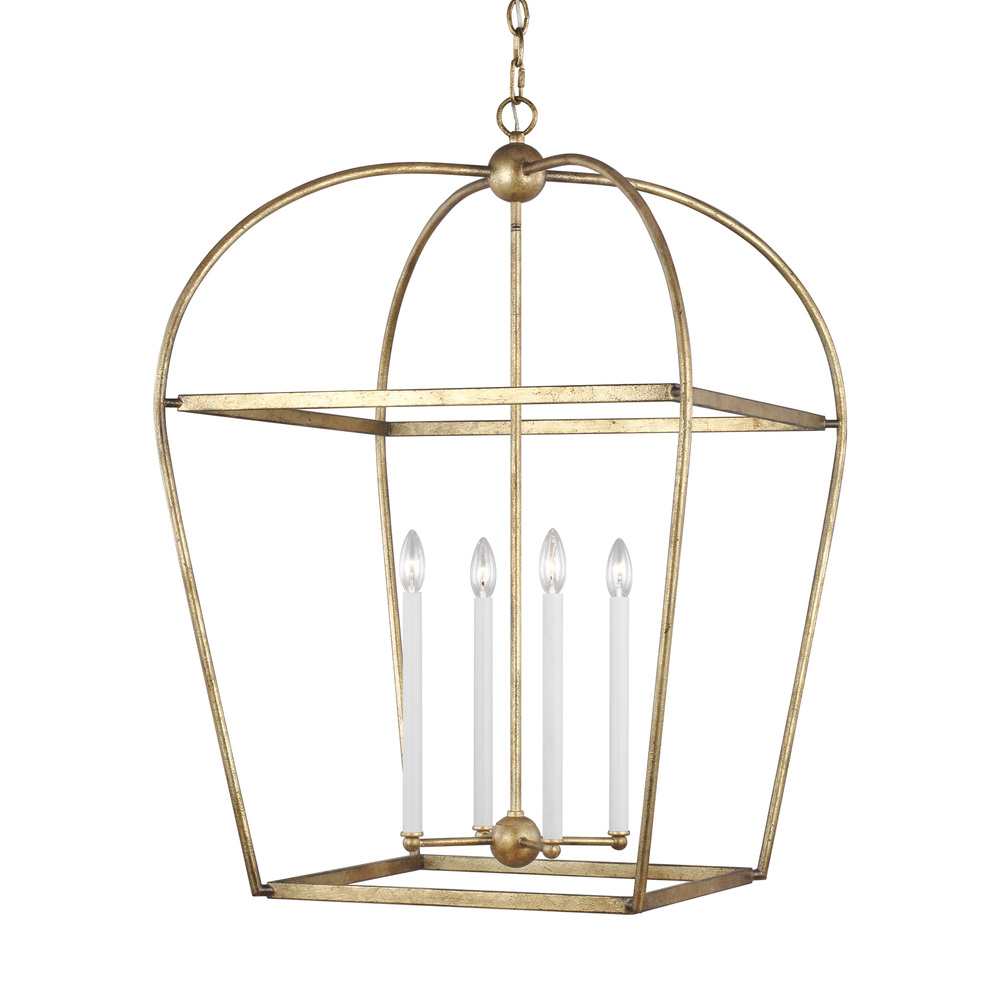 The Stonington four-light single-tier chandelier in antique gold is the perfect way to achieve your home's desired fashion or functional needs. Chapman & Myers have paired back the plantation-style lantern to its basic form – removing the glass sides and any adornment. The antique gild frame gives it a more classic, elegant look. Find the height or width that best matches your space.
