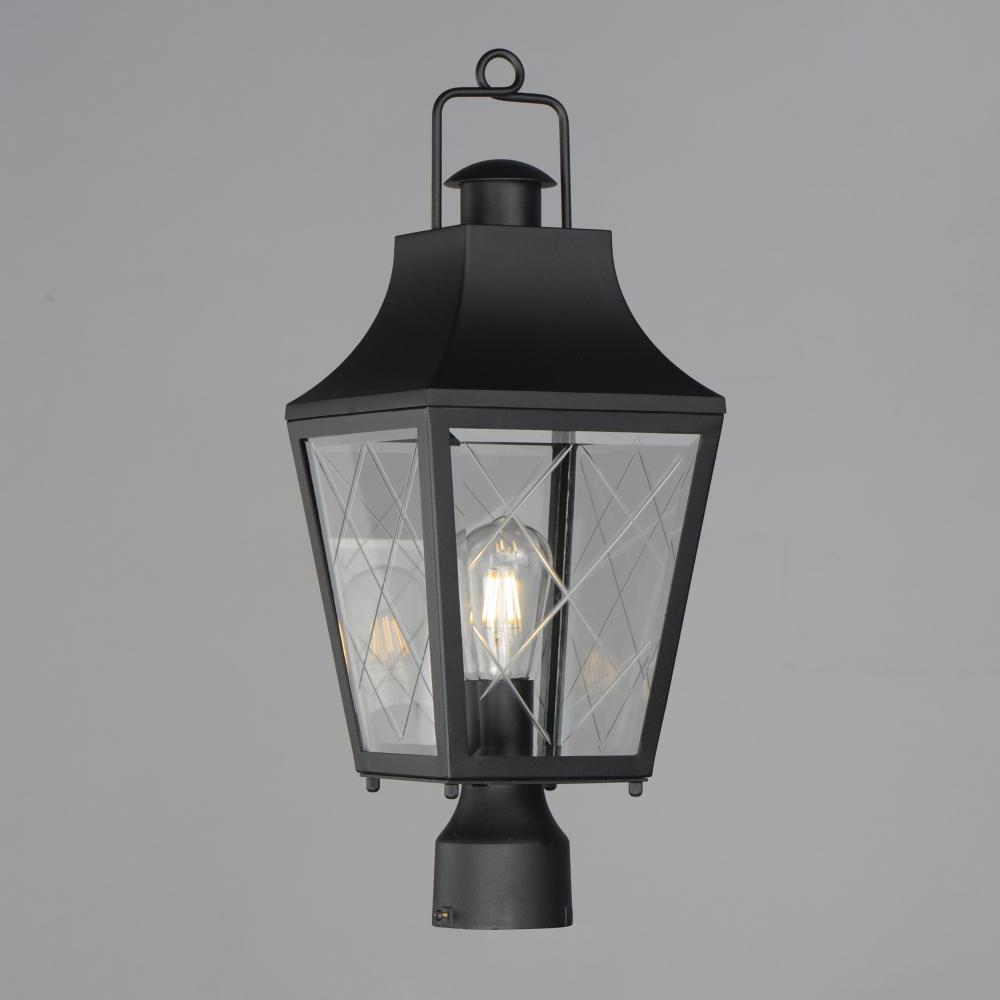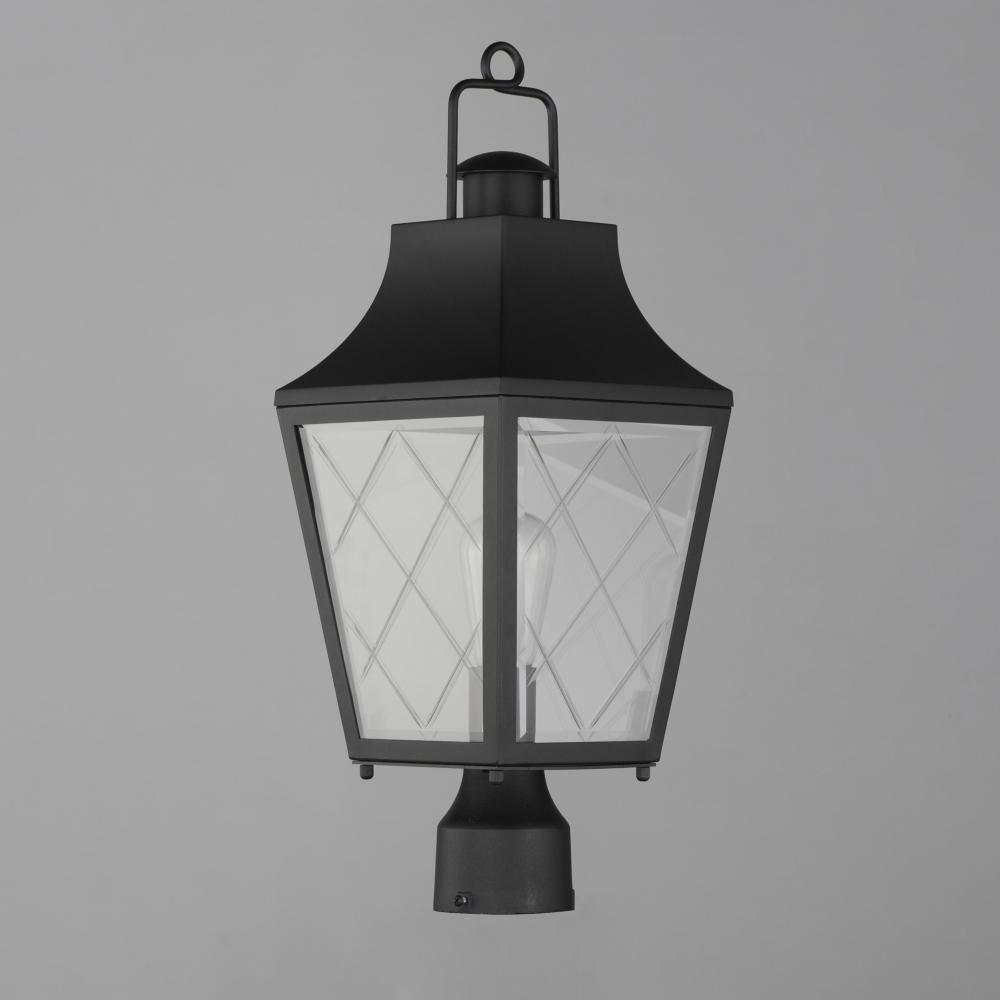 These charming cottage style lanterns feature unique cross-etched glass panels that are Clear and beveled along their edges. Additional design details such as whimsical loops above a chimney element add to the product's delightful appearance. Finished