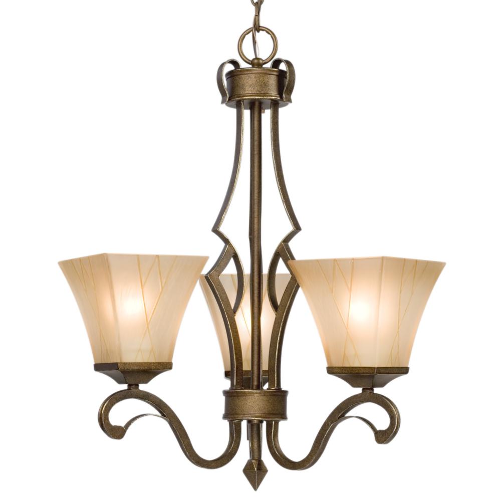 Three Light Chandelier - Olde World Gold with Beige Frosted Etched Glass