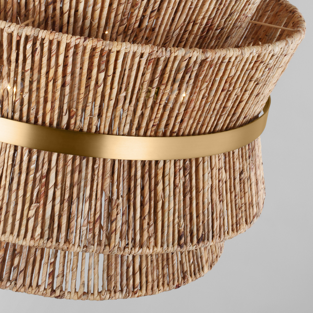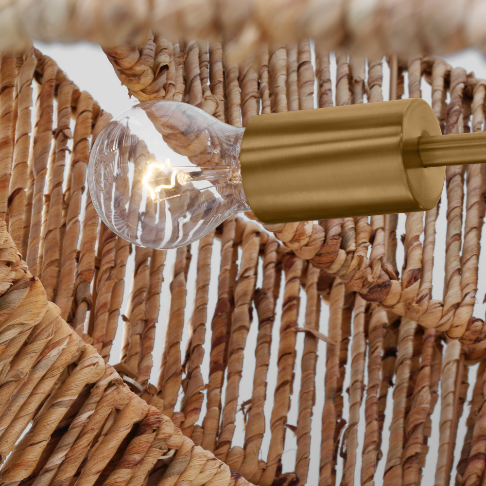 Make a bold style statement with the coastal-inspired organic Thurlo series by Drew & Jonathan Scott. Crafted of natural abaca rope, hand wrapped around the frame for a modern bohemian style and accented with a metal band for a tailored look. Filtering the light from within, each piece creates a play of light and shadow in a room, adding an inviting ambiance.