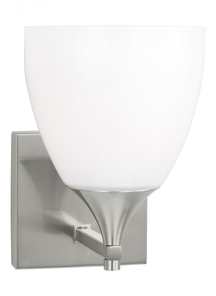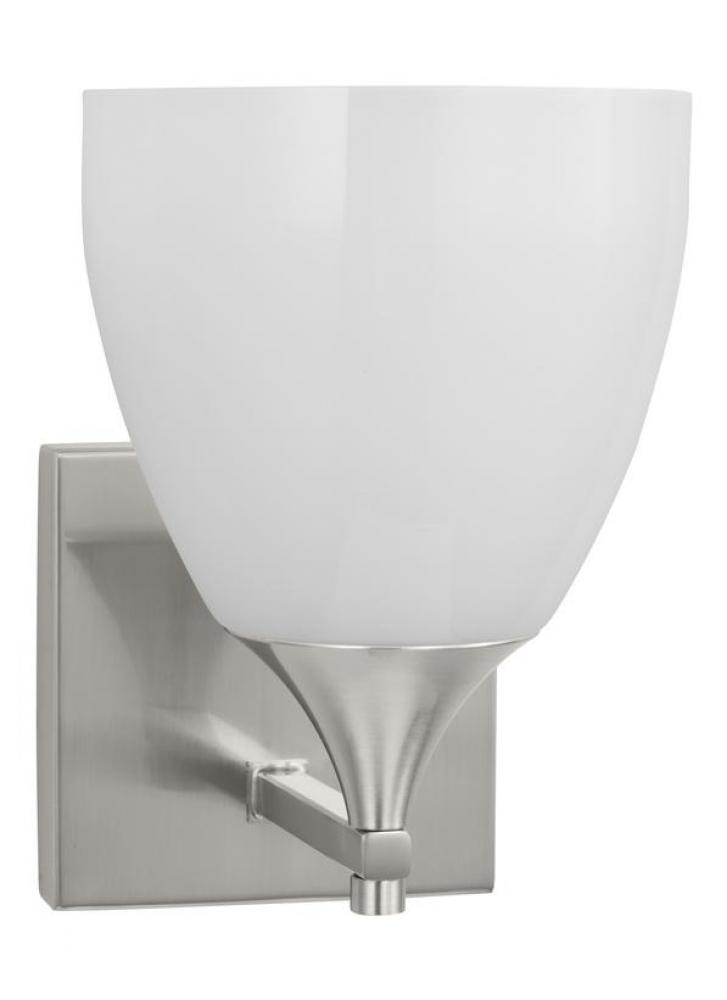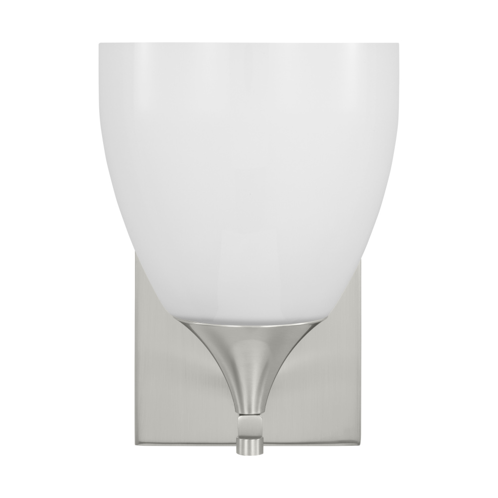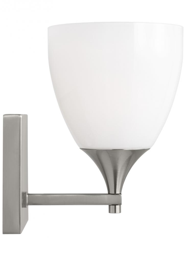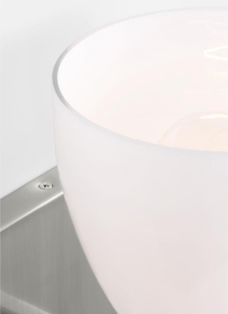 Made to coordinate across a broader range of bath hardware and design styles, this light breathes new life to its traditional shape with a milk glass shade and striking, modern finishes