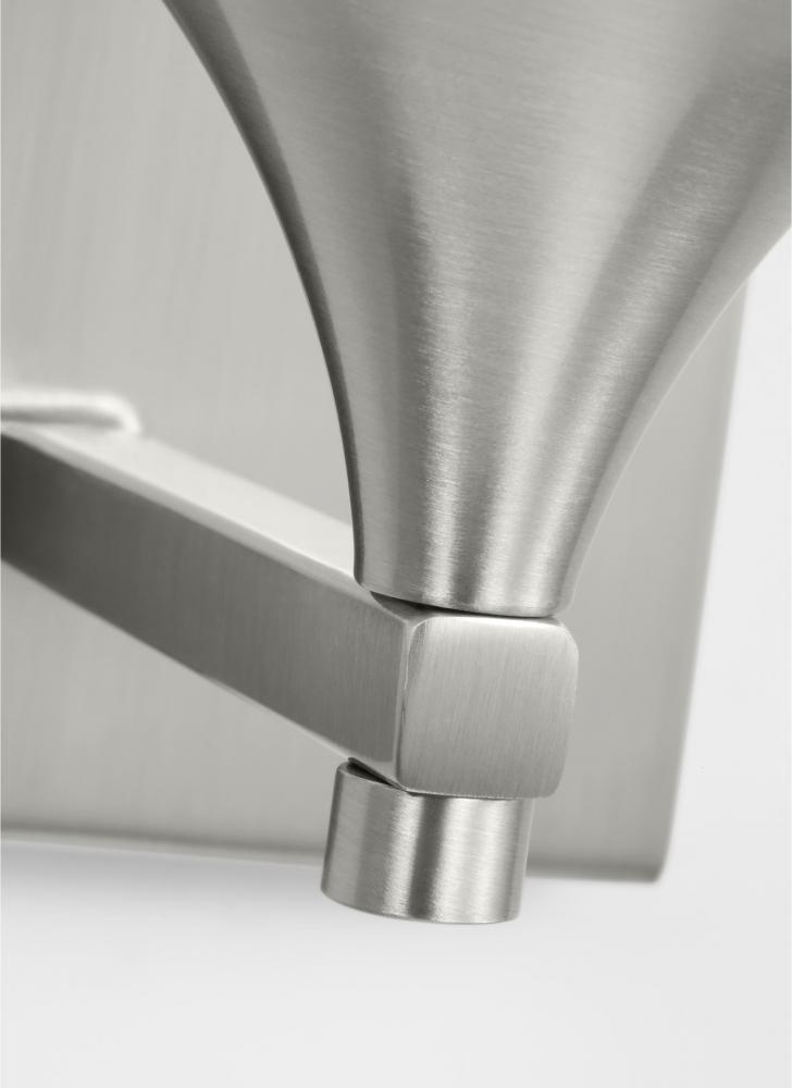 A modern take on a classic design, the Drew & Jonathan Toffino Small Sconce breathes new life to its traditional shape with a milk glass shade and striking, modern finishes. Made to coordinate across a broader range of bath hardware and design styles, the Toffino is available in four popular finishes, Brushed Steel, Chrome, Midnight Black, and Satin Brass, and looks great on its own or installed above a bathroom vanity. This fixture may be mounted in the up or down position, and is cETL listed for damp locations, making it the perfect lighting solution for any space.