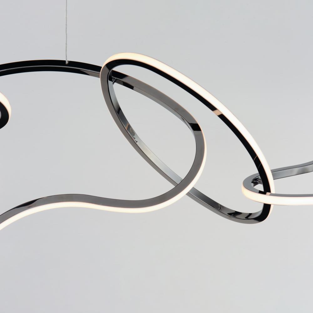 Abstract shapes of stainless steel are finished in Brushed Champagne or Black Chrome and intersect to create an intriguing sculpture of light. Unity provides both art and illumination for those searching for a unique lighting piece.