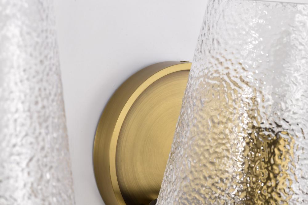 Valentine; 2 Light Vanity; Vintage Brass Finish; Hammered Glass