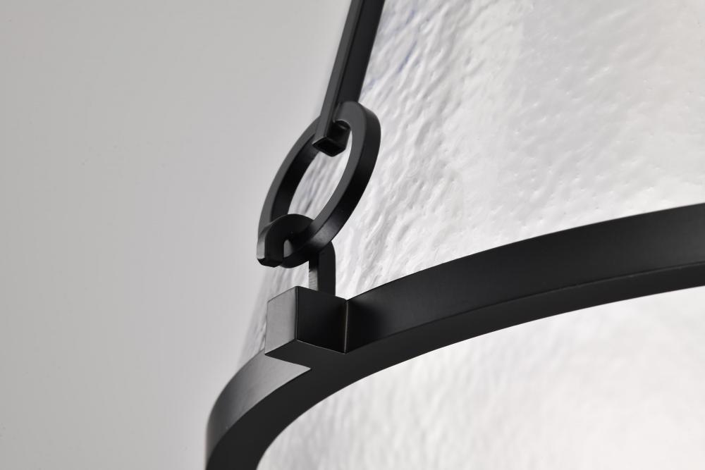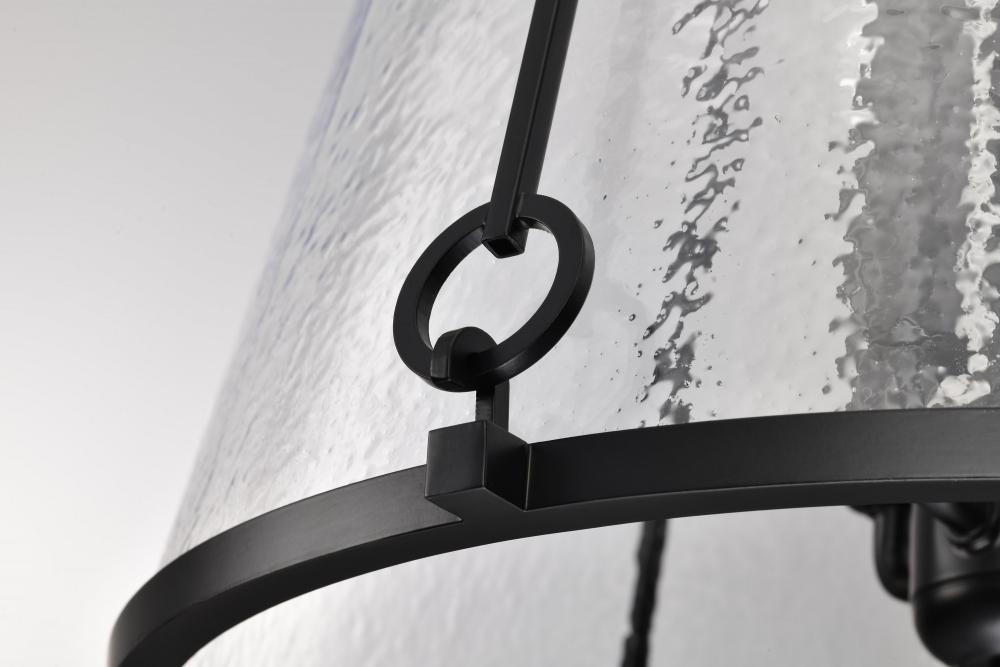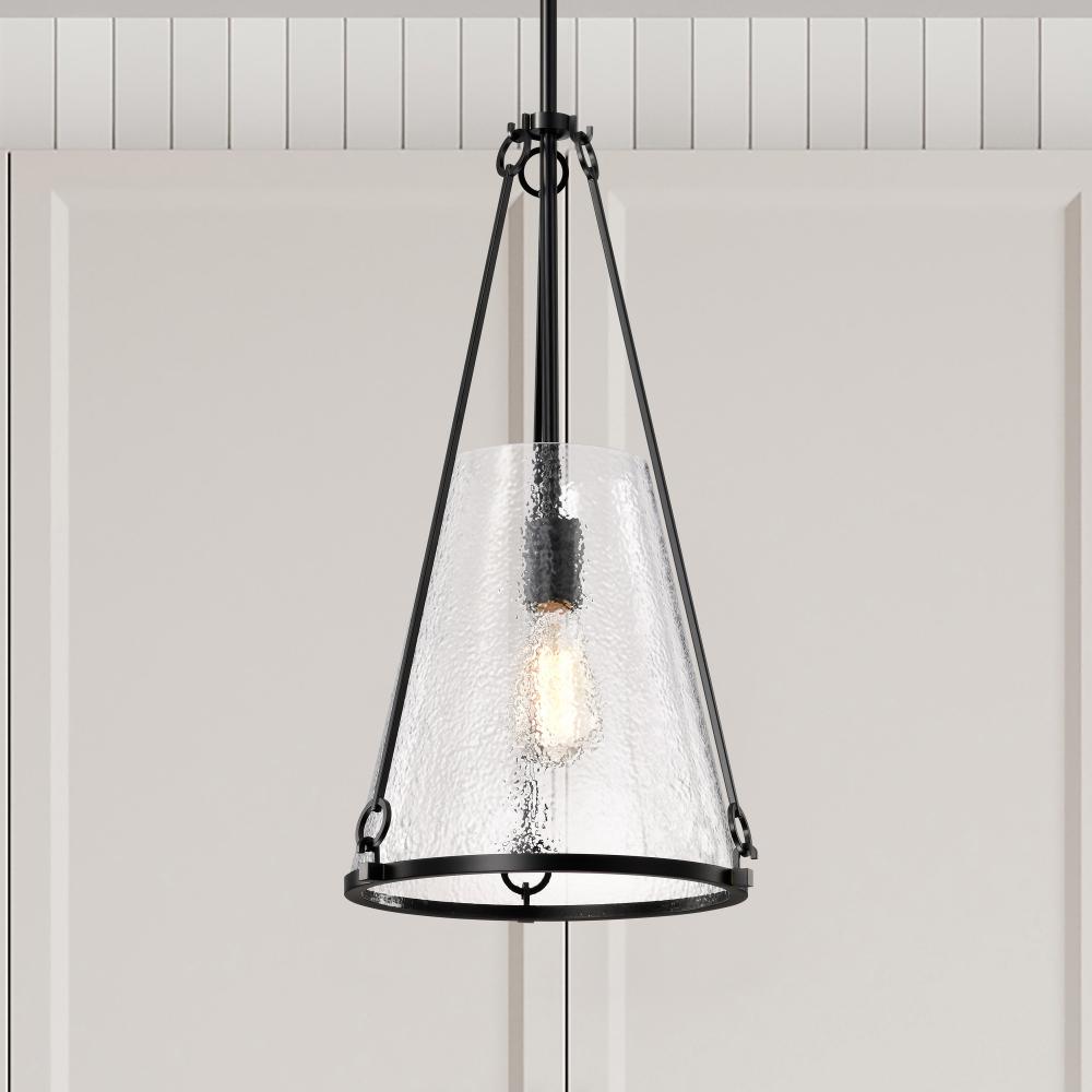 Valentine; Medium Pendant; Black Finish; Hammered Glass