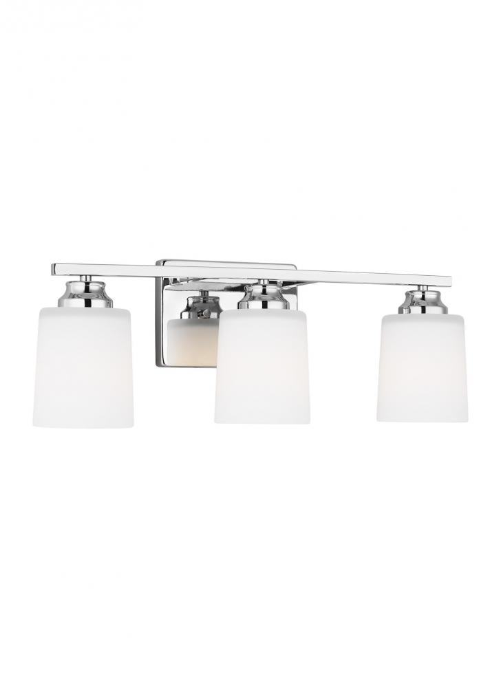 Transitional fixture in chrome finish will complement bathrooms, powder rooms, bedrooms, and hallways