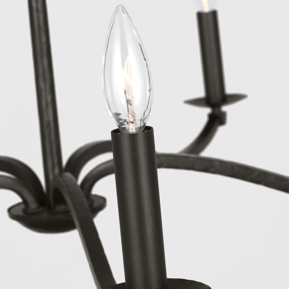 The Wellen series by Chapman & Myers beautifully merges the artistry of traditional blacksmith techniques with modern design sensibilities. Constructed from square iron tubes, the chandelier’s gracefully curved arms evoke a sense of refined craftsmanship. Intricate details such as the top loop, brackets, and candle cups further enhance its timeless aesthetic. The Wellen chandelier's classic silhouette is perfect for adding a touch of elegance and sophistication to traditional, vintage-inspired, and transitional interiors. Ideal for dining rooms, living spaces, or entryways, this piece transforms any room into a warm and inviting space with its understated yet striking design.