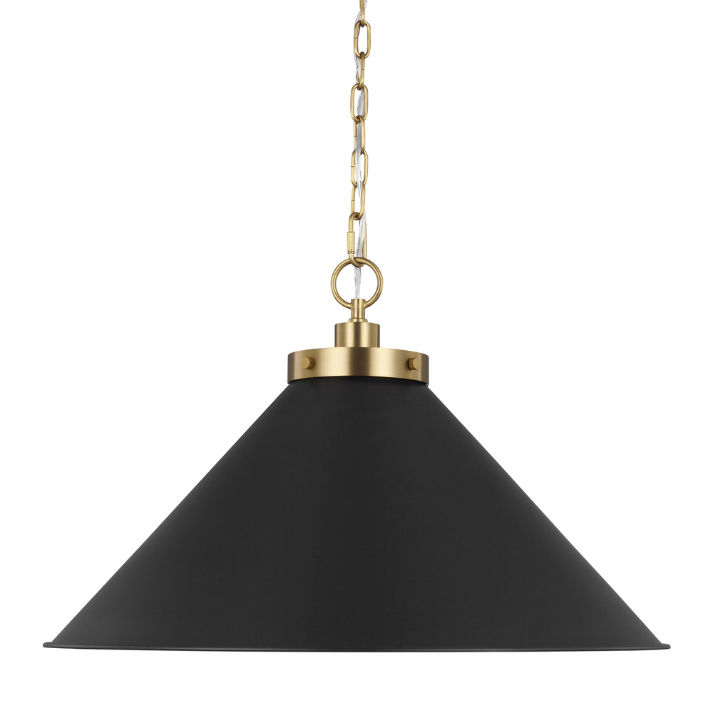 Inspired by various classic utility silhouettes - from factory lighting to barn sconces - capped by contrasting metal hardware. Each shade of the Wellfleet series by Chapman & Myers is available multiple sizes of 3 versatile profiles; either a flat farm dome, a traditional factory dome, or tapered cone. The shades are available with either a black or white finish and are paired with either a burnished brass or polished nickel collar, chain and canopy.
