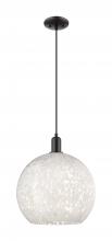 White Mouchette - 1 Light - 8 inch - Matte Black - Cord Hung - Mini Pendant