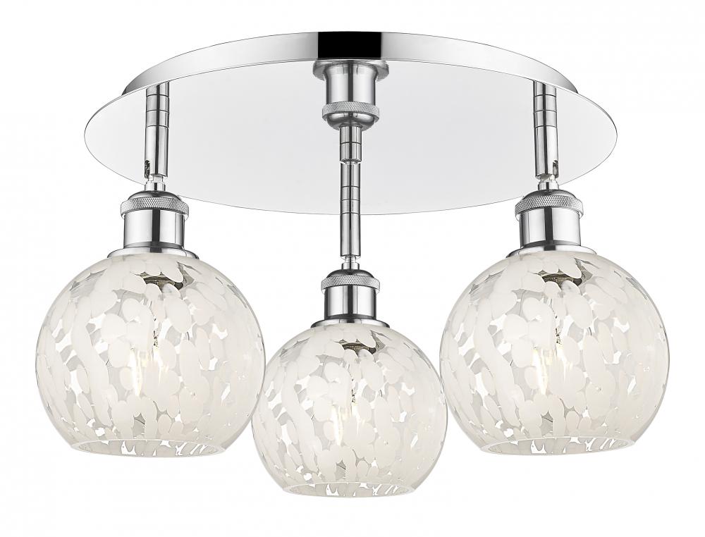 White Mouchette - 3 Light - 18 inch - Polished Chrome - White Mouchette Shade - Semi-Flush Mount