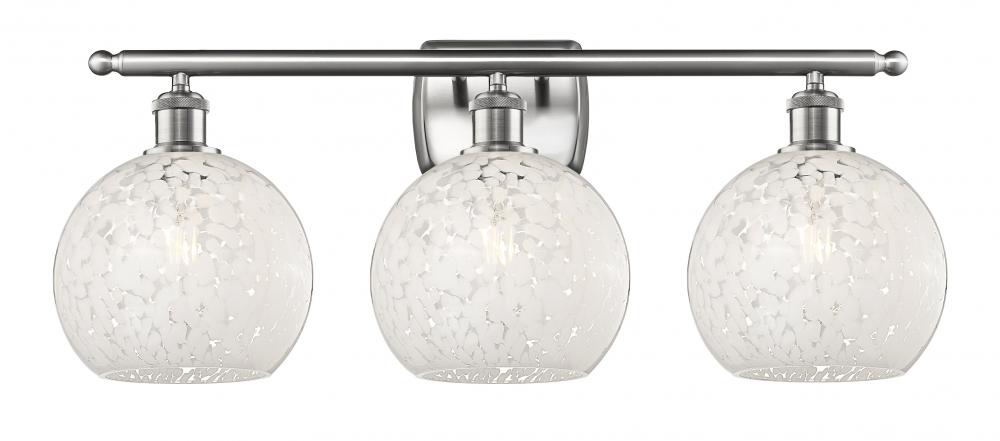 White Mouchette - 3 Light - 28 inch - Brushed Satin Nickel - White Mouchette Shade - Bath Vanity Light