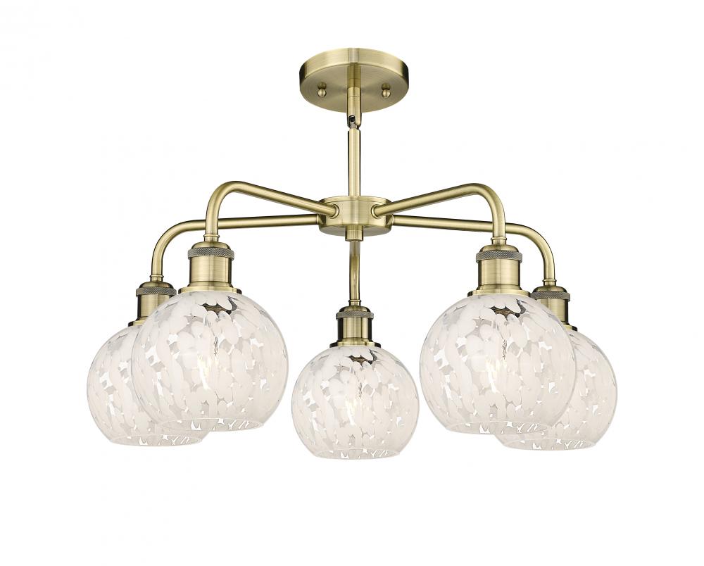 White Mouchette - 5 Light - 24 inch - Antique Brass - White Mouchette Shade - Chandelier