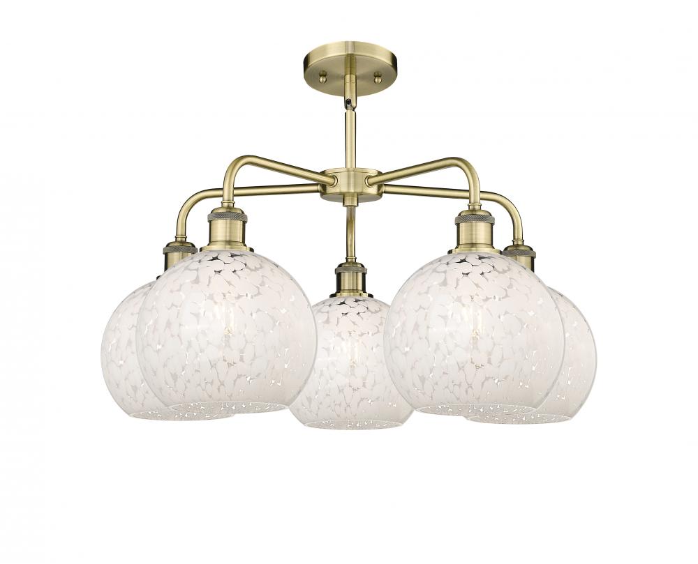 White Mouchette - 5 Light - 26 inch - Antique Brass - White Mouchette Shade - Chandelier