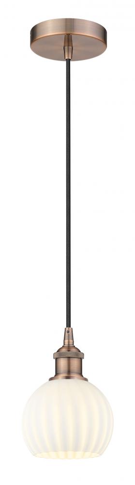 White Venetian - 1 Light - 6 inch - Antique Copper - White Venetian Shade - Cord Hung - Mini Pendant