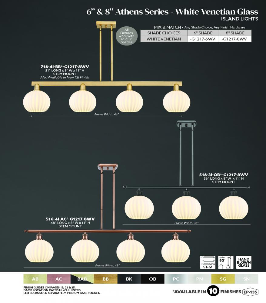 White Venetian - 3 Light - 36 inch - Polished Chrome - White Venetian Shade - Stem Hung - Island Light