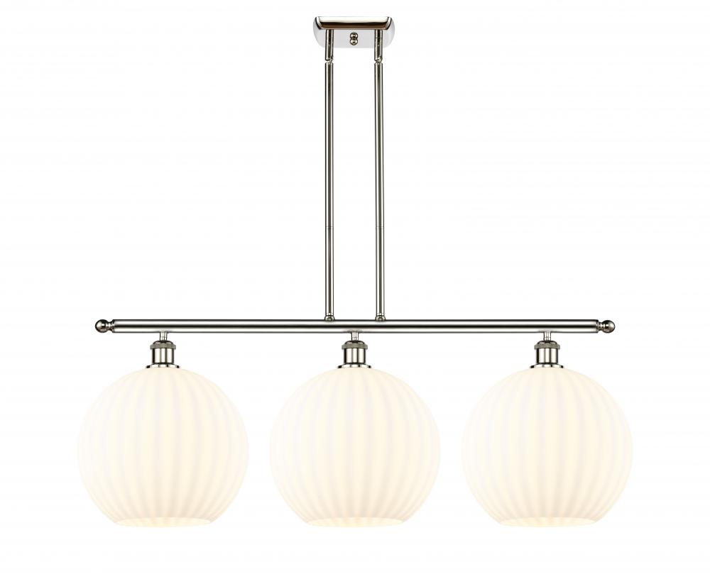 White Venetian - 3 Light - 39 inch - Polished Nickel - White Venetian Shade - Stem Hung - Island Light