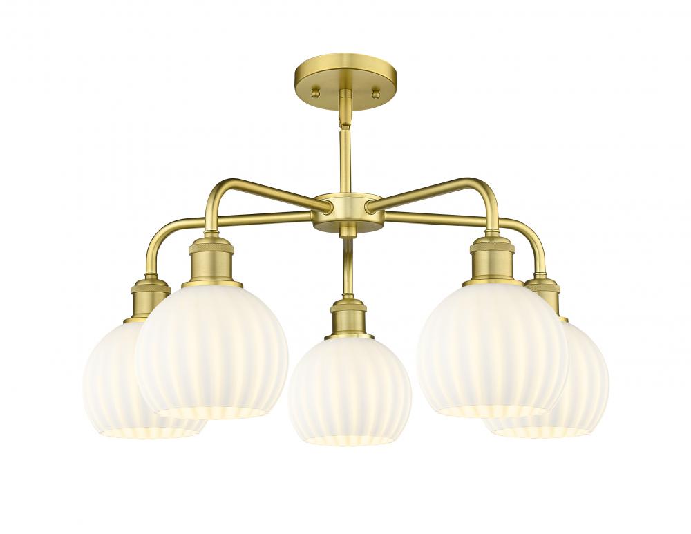 White Venetian - 5 Light - 24 inch - Satin Gold - White Venetian Shade - Chandelier