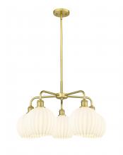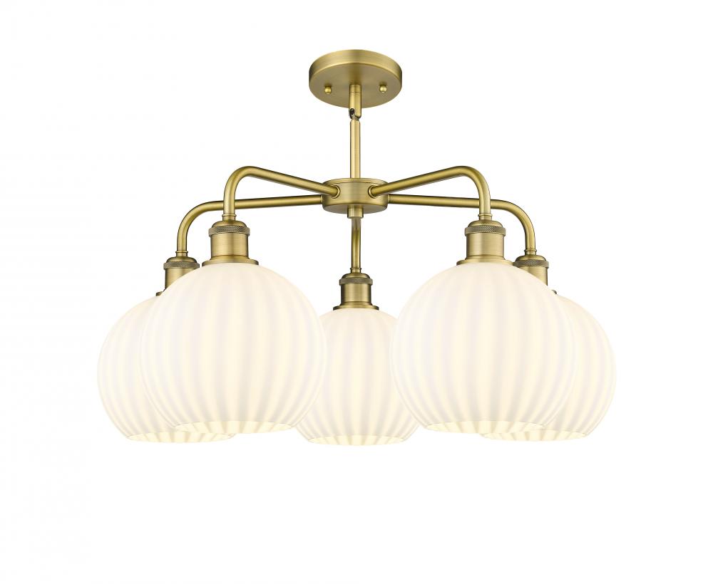 White Venetian - 5 Light - 26 inch - Brushed Brass - White Venetian Shade - Chandelier
