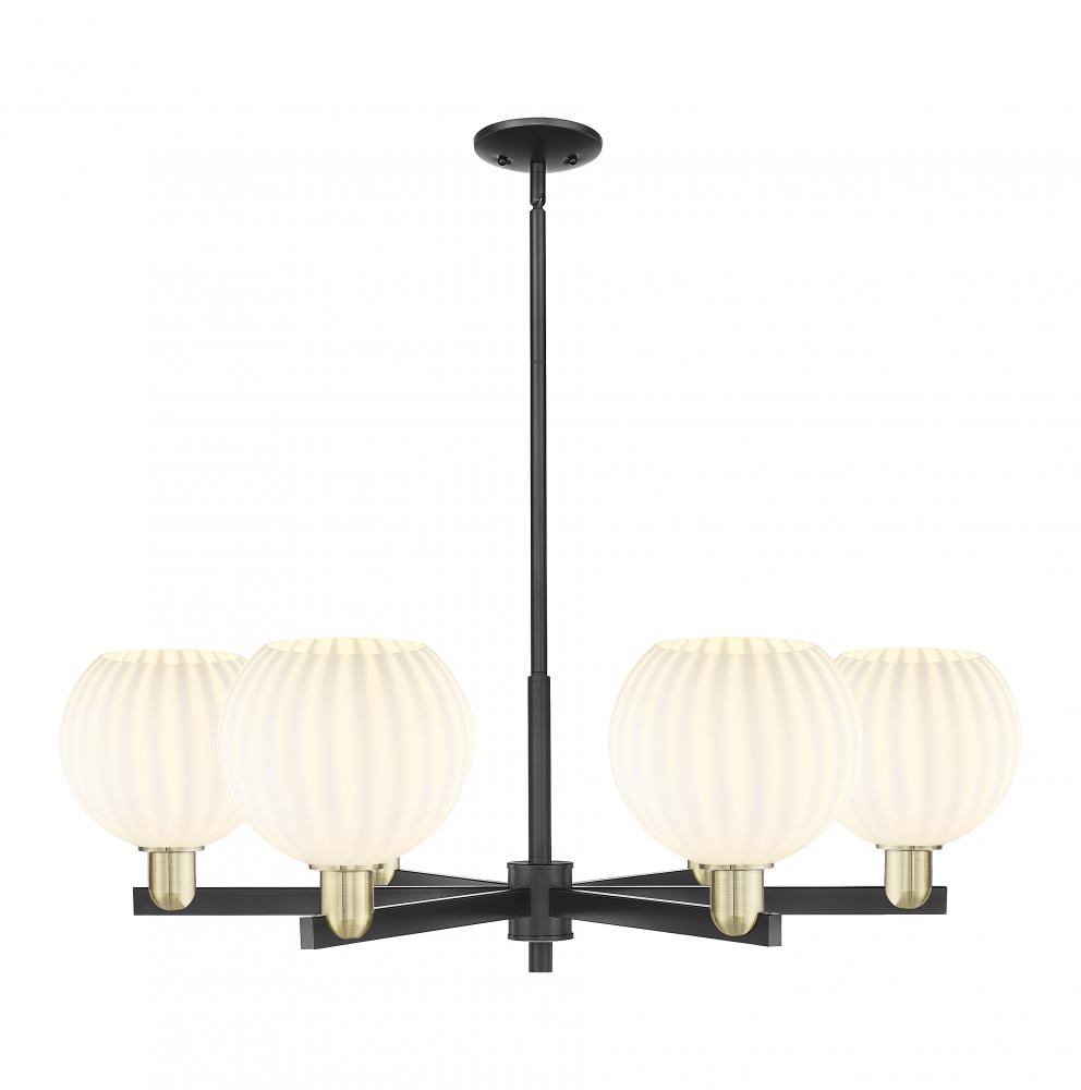 White Venetian - 6 Light - 38 inch - Black Antique Brass - White Venetian shade - Stem hung - Chandelier