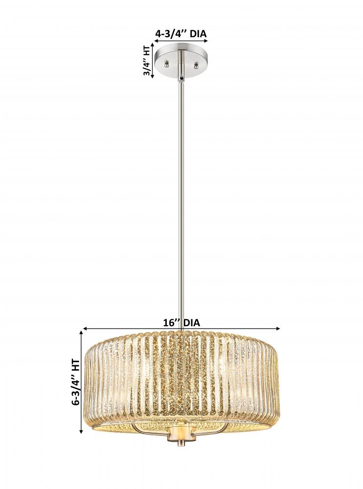 Windsor - 3 Light - 16 inch - Brushed Satin Nickel - Mercury Windsor Shade - Stem hung - Pendant