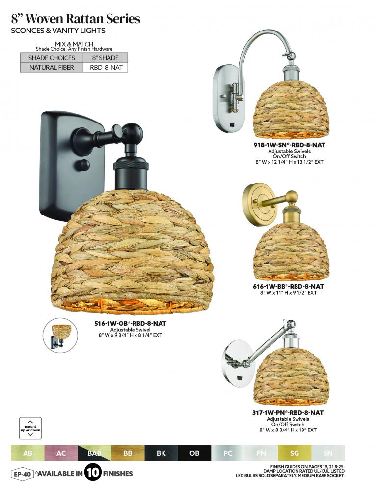 Woven Rattan - 1 Light - 8 inch - Oil Rubbed Bronze - Sconce