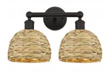 Woven Rattan - 2 Light - 17 inch - Brushed Satin Nickel - Natural shade - Bath Vanity Light