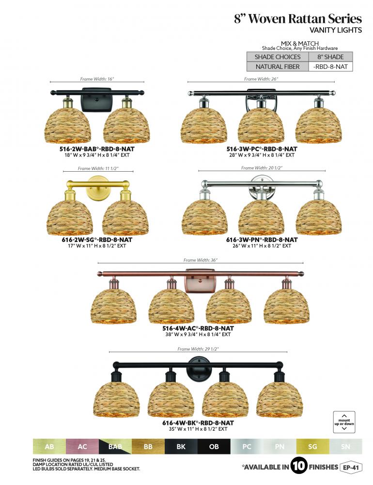 Innovations Lighting 516-1W-PN-RBD-8-NAT - Woven Rattan - 1 Light - 8 inch - Polished Nickel - Sconce