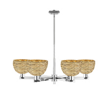Woven Rattan - 6 Light - 38 inch - Polished Nickel - Natural shade - Stem hung - Chandelier